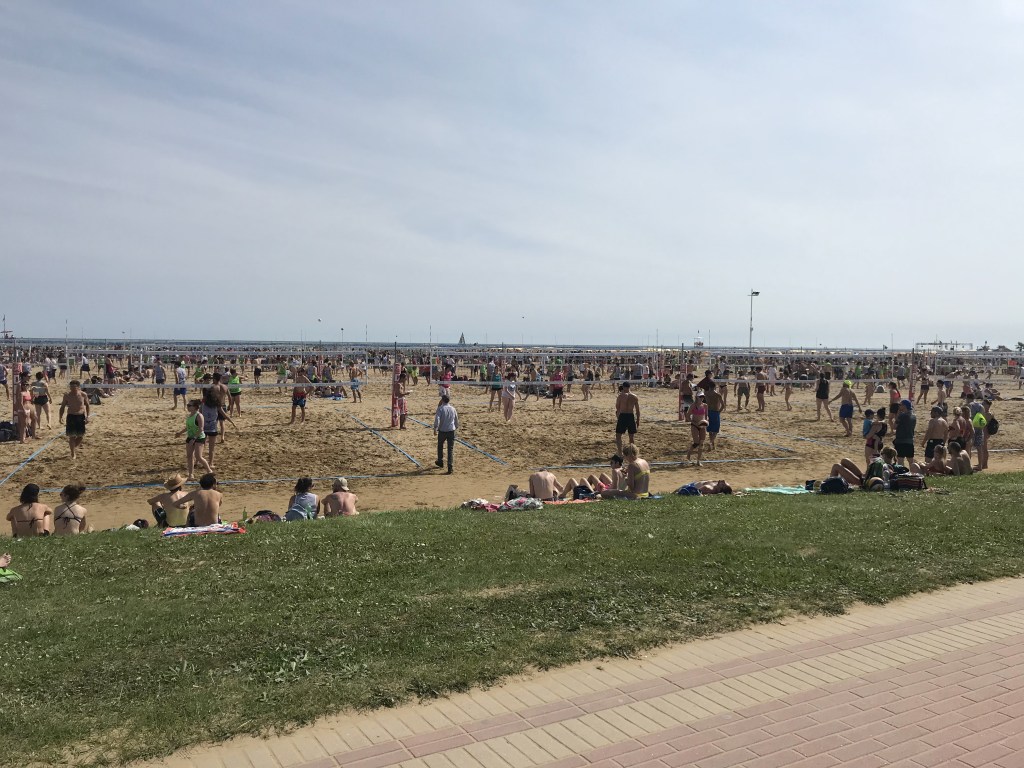 Auf dem Platz ging es gleich unter die Dusche, in eines der sehr modernen Sanitärhäuser auf dem Platz. Einzig allein die Wasserqualität in Italien lässt uns keine Freudensprünge machen, das Wasser ist extrem glitschig. Am Abend ging es nochmal in die Stadt, in der zur gleichen Zeit auch noch zufällig das größte Amateur Beach Volleyball Turnier in Europa war in das am Abend noch ein kleines Festival drangehangen wurde. Das schauten wir uns natürlich auch an.
