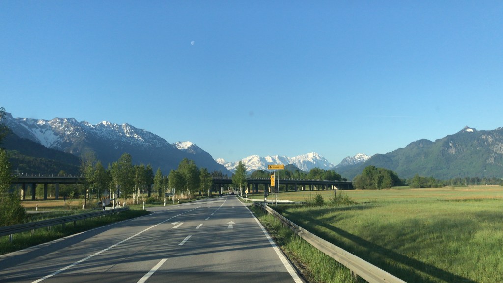 Da wir erst abends gegen 8 Uhr losgefahren sind, kamen wir nur noch knapp hinter die Grenze in die Schweiz. Wir mussten uns noch eine Vignette nachts kaufen, bevor wir auf dem erstbesten Parkplatz das Bett aufsuchten.