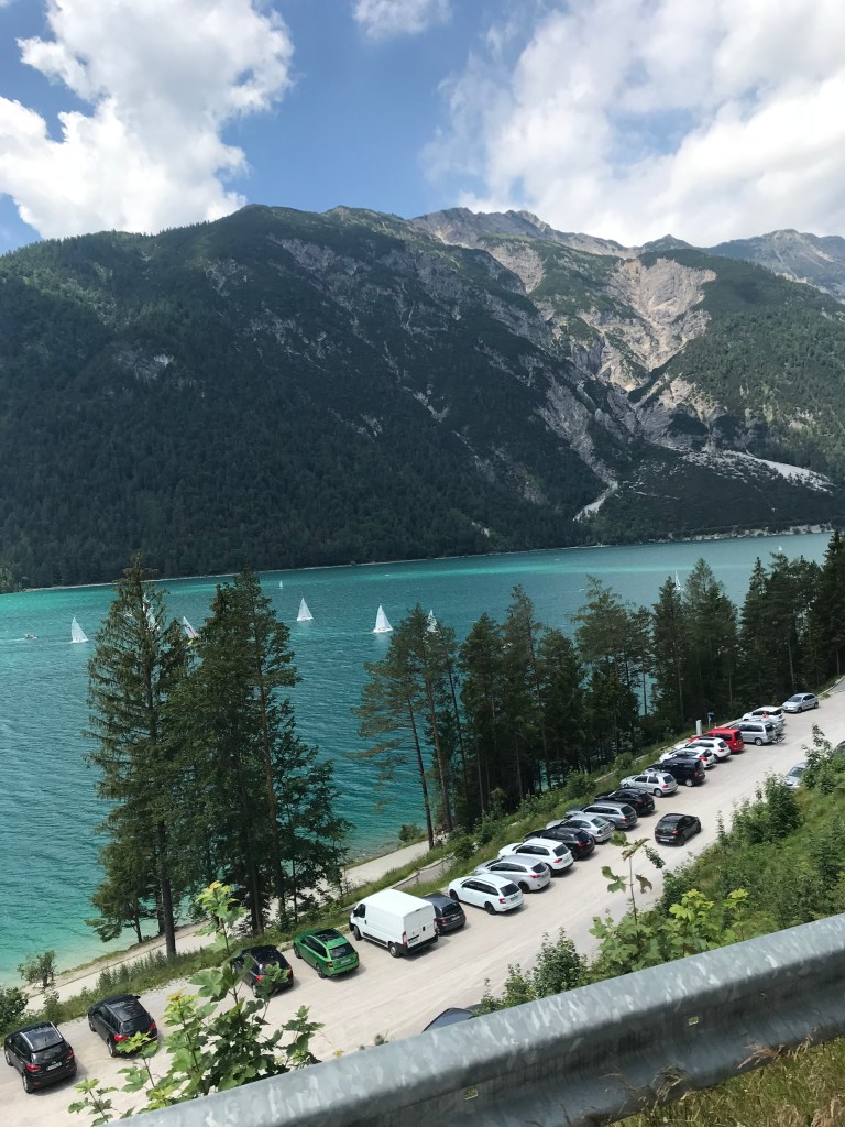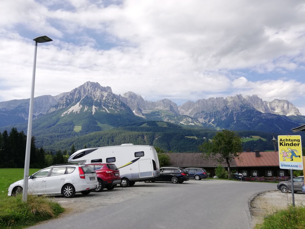 Also entschieden wir keinen ruhigen Relax Tag zu machen, sondern die Gegend mit dem Wohnmobil zu erkunden. So starteten wir den Tag mit der Umrundung des herrlichen Achensee, der viele Parkmöglichkeiten rund um den See bietet, um ans Ufer zu erlangen. Danach ging es weiter, vorbei an kleinen Dörfern, über Berge mit zahlreichen Serpentinen hinein wieder in grüne Täler. Irgendwann, nach zig atemberaubenden Kilometern entlang der Alpen kamen wir zum Wilden Kaiser, eine Gebirgskette, die uns ein Begriff ist aus einer unserer Lieblingssendungen dem “Bergdoktor“.