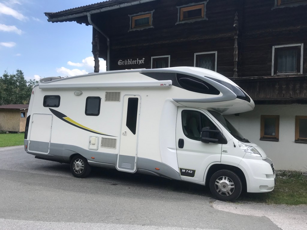 So fuhren wir morgens voller Elan in Richtung des Sees. Der Weg führte uns durch Scheffau durch, hinein in einen kleinen Wald, in dessen die Kurven relativ bald relativ eng wurden. Auch der Weg wurde enger und enger und Ausweichstellen bei Gegenverkehr wurden seltener. Am See angekommen wurde es noch ärgerlicher, die 6 Kilometer Lange Weg für den wir gut 20 Minuten gebraucht haben, endete in einer Sackgasse für uns. Der großzügige Parkplatz ist leider nicht für Wohnmobile, der Parkplatzwächter schickte uns wieder weg. Glücklicherweise gab es entlang des Weges zahlreiche große Höfe von Landwirten, von denen uns dann einer erlaubte, uns für ein paar Stunden fürn Fünfer bei ihm auf den Hof zu stellen.