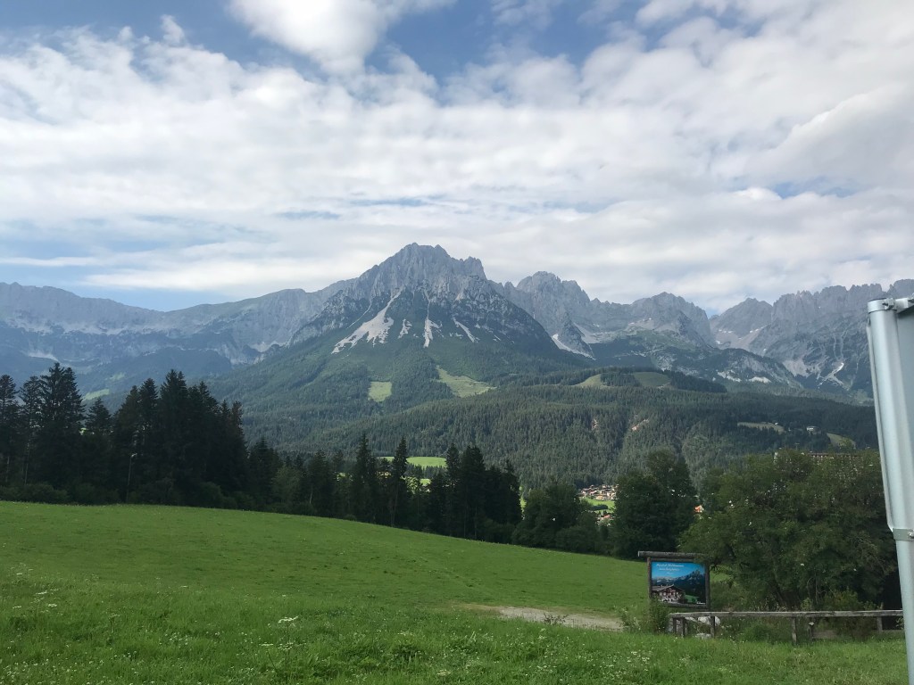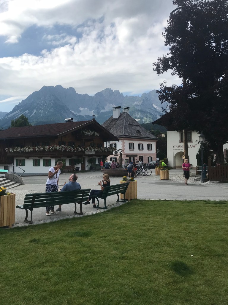 So nutzten wir die Chance uns die Drehorte mal selbst anzuschauen. So waren wir an diesen Tag noch in Ellmau, in dessen Ort der Marktplatz mit Kirche liegt an dem oft gedreht wird. Außerdem schauten wir uns die Praxis an, das Bergdoktorhaus, von dessen Parkplatz wir dann noch das herrliche Alpenparonama genießen konnten.
