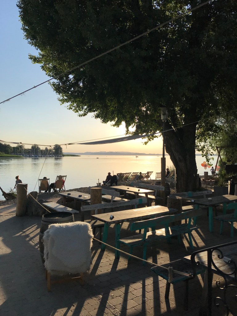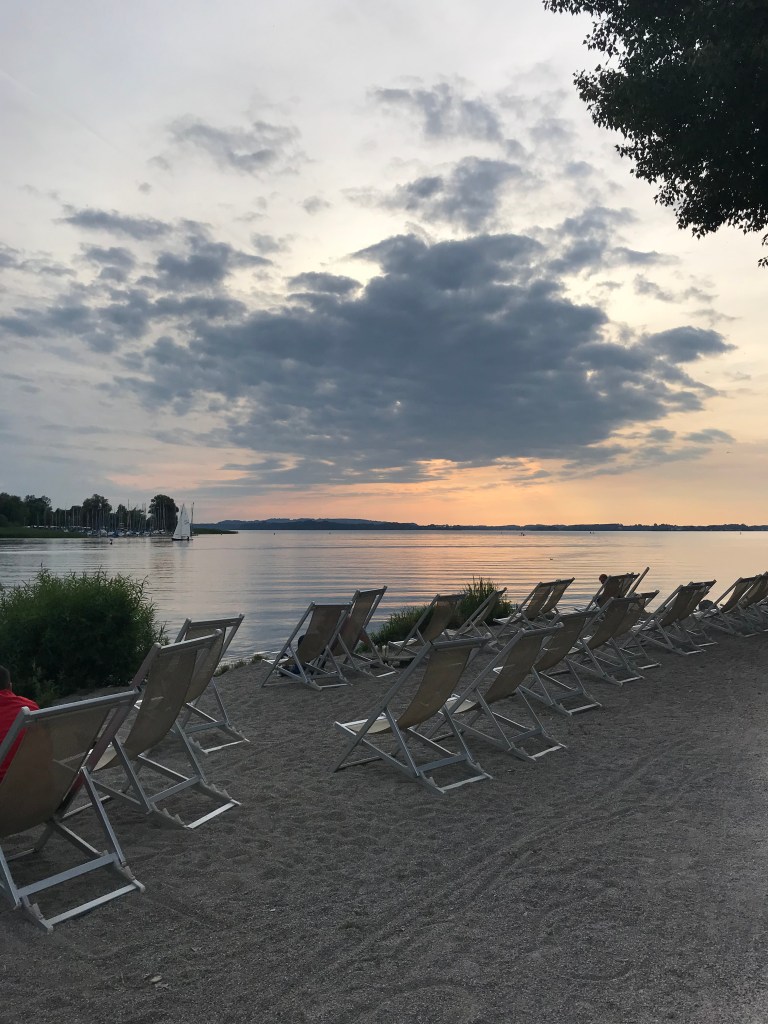 Natürliche kamen wir wieder an allerlei herrlichen Aussichtspunkten vorbei, wodurch der 60 Kilometer Lange Weg zum Chiemsee zeitlich sehr lange war, aber die schönen Blicke in die Täler ließen uns keine andere Wahl. So kamen wir Abends am Chiemsee an, dort hatten wir zum ersten Mal die Situation, das wir anfangs keinen Platz gefunden haben, da alles schon ausgebucht war. Nach einer kleinen Odyssee über die zahlreichen Campingplätze entlang des Sees fanden wir den Camping Platz Chiemsee Camping in Übersee, an der südlichen Seite des Sees, auf den noch ein Platz für uns frei war. Im Anschluss gingen wir noch eine Weile am See spazieren, auf dessen Promenade wir auch noch eine Wirtschaft fanden in der wir unser Geld noch in Cocktails umtauschen konnten.