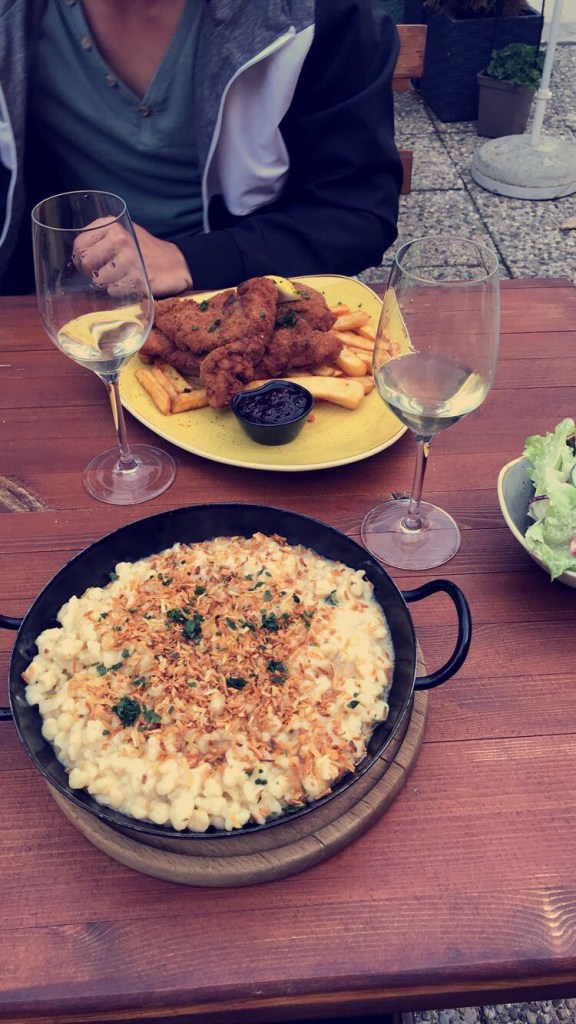 Maurach liegt direkt am Achensee, dem größten See in Tirol. Wir haben uns telefonisch beim Seecamping Wimmer angemeldet, dessen Campingplatz direkt am See liegt. Nach circa 5 Stunden Fahrt erreichten wir dann gegen Abendbrotszeit unser Ziel und konnten uns sofort auf unseren Stellplatz positionieren. Nach einem kleinen Spaziergang am See entlang gönnten wir uns ein Abendessen direkt im Restaurant des Campingplatzes. Nicht nur der Geschmack der leckeren Kasspatzen, auch der wundervolle Blick auf den See, mit den im Hintergrund sich auftürmenden Bergen und einen netten Besucher während des Essens, der über Stunden wartete, ob nicht doch etwas vom Tisch fallen würde, ließ uns gleich am ersten Tag ein wundervollen Abend in Österreich haben. Kasspatzen, ein klarer Gletschersee und die Berge ließ uns sofort mit voller Kraft wissen, das wir angekommen sind in Österreich.