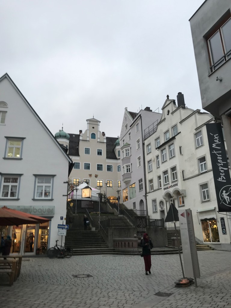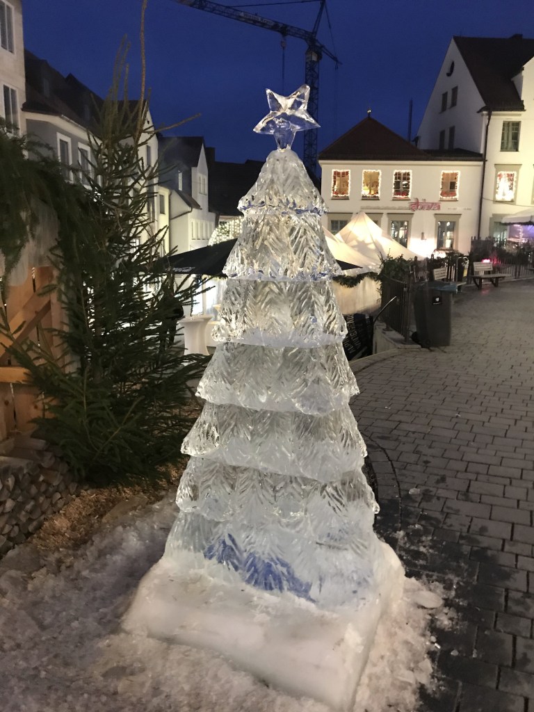 Mit der Hoffnung auf den lange Jahre vermissten Schnee starten wir unsere Reise ins südliche Deutschland, das ja eigentlich im Dezember eine gewisse Schneegarantie bietet. Es geht durch verregnetes Wetter ins Allgäu nach Kempten, dort wollen wir unseren ersten Weihnachtsmarkt dieses Jahr besuchen. Die Stadt bietet nahe der Altstadt einen kostenpflichtigen Parkplatz für Wohnmobile am Illerstadion an. Zu dessen Leid aber zu unserer Freud war leider der Automat an diesen ersten Dezembertagen defekt, so konnten wir nach telefonischer Auskunft diese Nacht kostenlos hier verbringen. Am Rande des Flusses Iller liegt der Stellplatz sehr ruhig und versteckt hinter ein paar Hecken. Der Fußmarsch von 5 Minuten hinüber über eine Brücke führt uns in die Altstadt, wo auch schon der herrlich geschmückte gemütliche Weihnachtsmarkt aufwartete. Das Bummeln durch die historische Altstadt mit ihren kleinen Gässchen ließen wir uns natürlich auch nicht entgehen, bevor wir uns auf dem Weihnachtsmarkt mit ein paar Glühwein wieder aufwärmten.