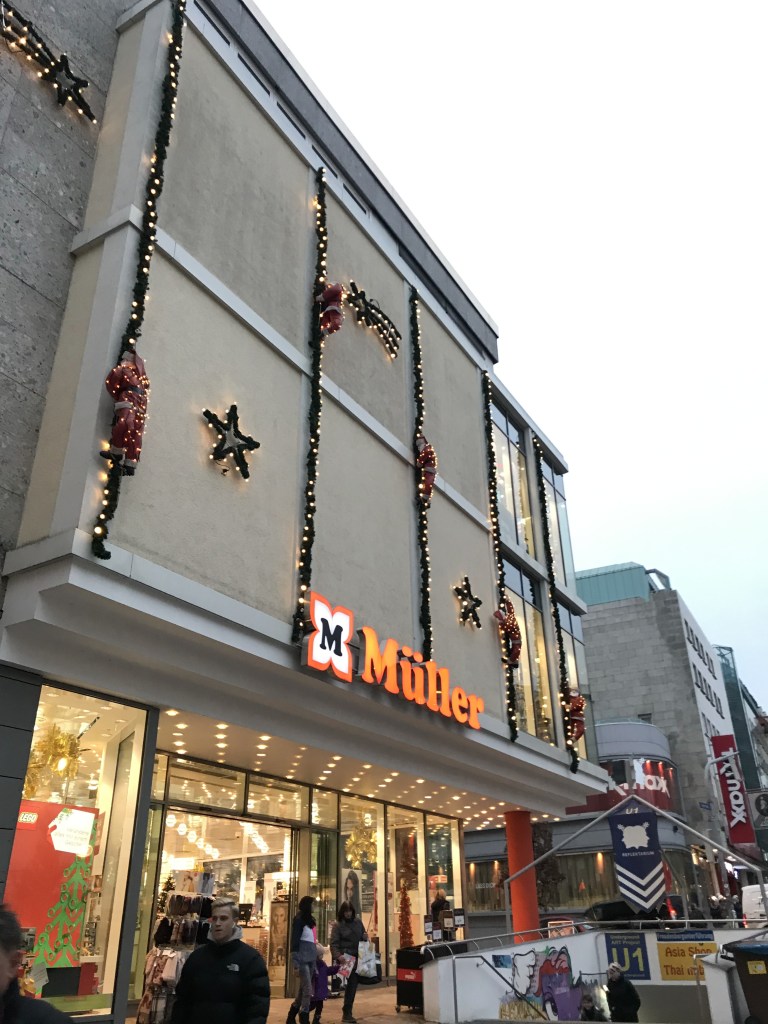 Dort angekommen entschieden wir uns für einen kostenlosen Wohnmobilstellplatz in der Gustav Heinemann Straße, der etwa eine Stunde Spaziergang von der Innenstadt entfernt lag. Kaum richtig angekommen waren wir schon heiß auf Glühwein und Lebkuchen, das wir gleich aufbrachen zum Christkindls Markt, aber auch hier gerade zum Freitagabend war es sehr sehr gut besucht. Die großen Weihnachtsmärkte haben zwar einiges mehr zu bieten als die kleineren, aber gefallen hat es uns auf den kleinen gemütlichen besser. Die menschenüberlaufenen großen Märkte laden keineswegs zum gemütlichen Flanieren ein, hier gilt eher Ellenbogen raus und sich den Weg durch die engen Gassen vorbei an zig Menschen zu bahnen. Das hat nunmal wirklich nichts, mit der besinnlichen Weihnachtszeit zu tun, auch wenn dieser Flair mit allerlei Live Musik, kostümierten Menschen und der teils sehr schönen Deko versucht wird aufrecht zu erhalten.