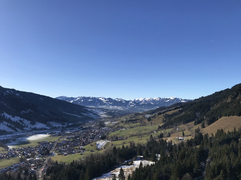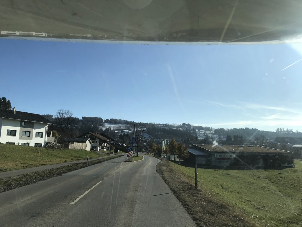 Am morgen dieses Tages mussten wir leider feststellen, das die fast 2 vollen Gasflaschen die wir dachten dabei zu haben, doch nur noch eine halbe war. So war es bei Außentemperaturen um die minus 10 Grad mit dem Ausfall der Heizung nicht mehr ganz so kuschlig warm wie tags zu vor, ehrlich gesagt bewegte sich die Temperatur im Innern so ziemlich um den Gefrierpunkt. Da das ehrlich gesagt zu kalt für ein gemütliches Frühstück war, entschieden wir uns gleich dafür nach Sonthofen in den dort ansässigen OBI zu fahren, damit auch unsere Heizung wieder was zu tun bekommt. Die Gasflaschen wurden problemlos getauscht und mit Zuversicht auf Schnee fuhren wir in Richtung Obersdorf, welches ja für seine Wintersportstätten und dem, wie wir glaubten, zugehörigen Schnee bekannt ist. Doch leider stellten wir mit großer Enttäuschung in Obersdorf fest, das hier auch kein weißes Nass zu finden ist.