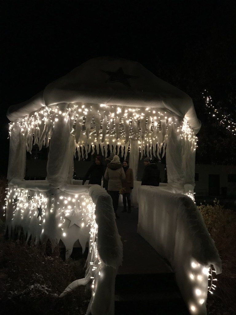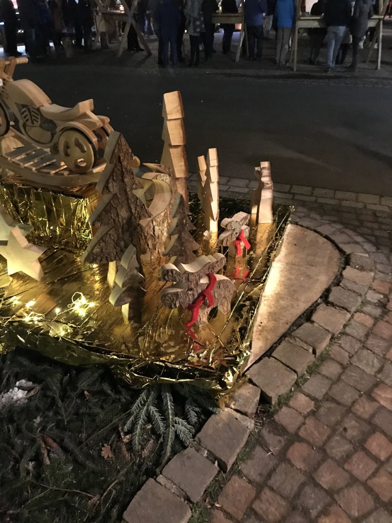 Der Platz ist angebunden an den Bus, der ausreichend oft zwischen Stadt und Platz hin und her pendelt. Die Stadt bietet zwar nur einen kleinen Weihnachtsmarkt, aber auch dieser hatte seinen eigenen Charme und konnte uns ausreichend bewirten. Auch die Stadt bietet allerhand Möglichkeiten zum Schlendern, Shoppen und Essen, darum gingen auch wir eine Kleinigkeit Essen.