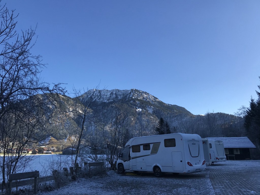 Bei eisigen Temperaturen hatte die Heizung diese Nacht gut zu tun, unser Bett warm zu halten. Dennoch hat sie uns nicht im Stich gelassen und wir konnten gemütlich im Wohnmobil frühstücken.