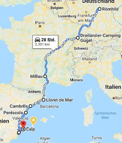 Auch wir registrierten langsam einge gewisse Beunruhigung aufgrund des Corona Themas in uns. Jeden Morgen wenn wir die Nachrichten checkten überschlugen sich die Ereignisse und auch die Fallzahlen. Auch die Fallas, deren Aufbau wir vor zwei Tagen noch bestaunen konnten wurden abgesagt, einige Länder beschlossen ihre Grenzen zu schließen und unsere Familien machten sich auch stetig mehr Sorgen um unsere sichere Heimkehr. So beschlossen wir heute ein ganzes Stück Richtung Heimat zu kommen, um schon mal ein bisschen näher an Deutschland zu sein. Ein richtiges Ziel hatten wir noch nicht im Auge, also stellten wir unser Navi nach Hause ein und wollten dann spontan entscheiden, wo und wann wir stehen bleiben.