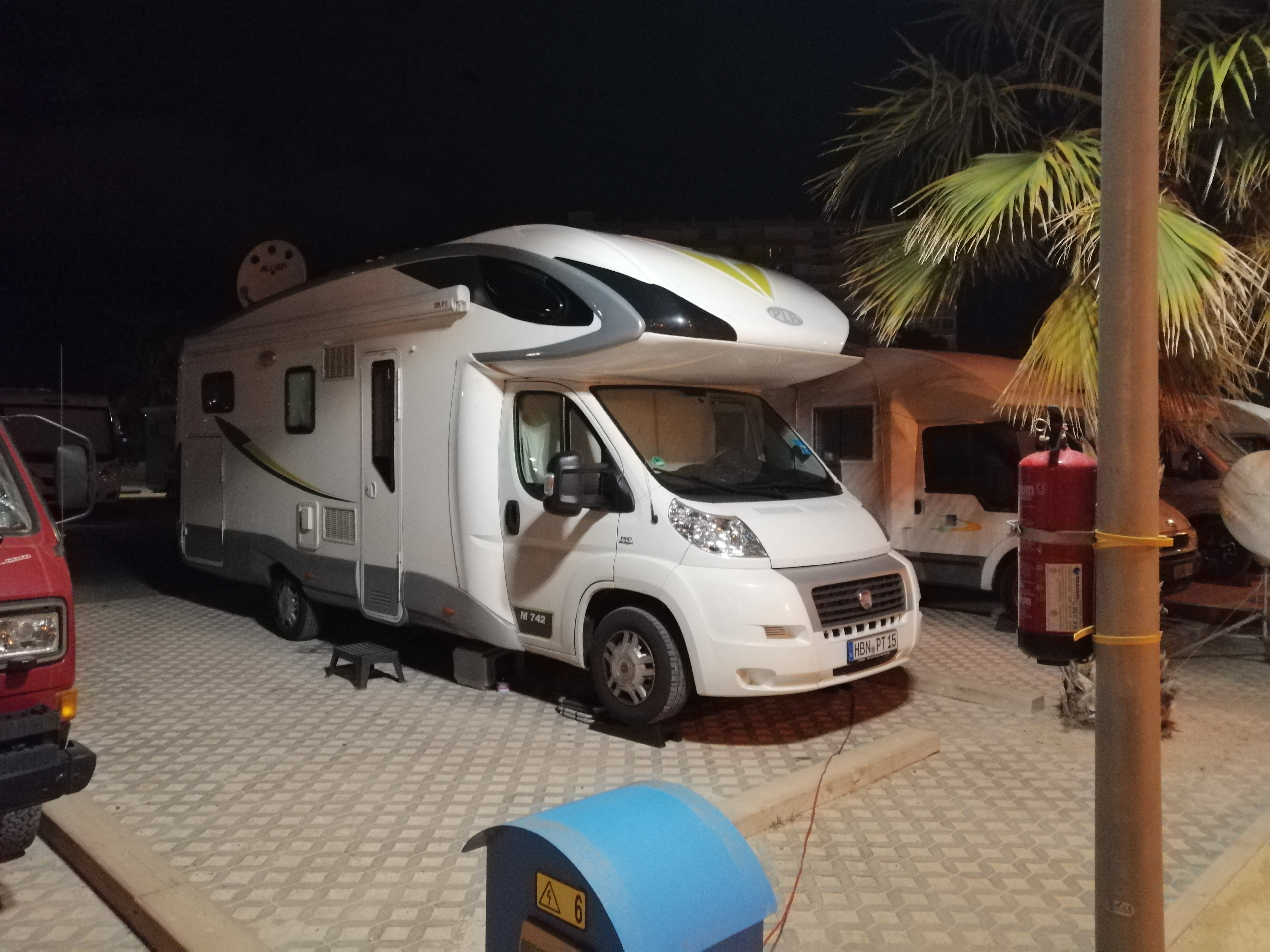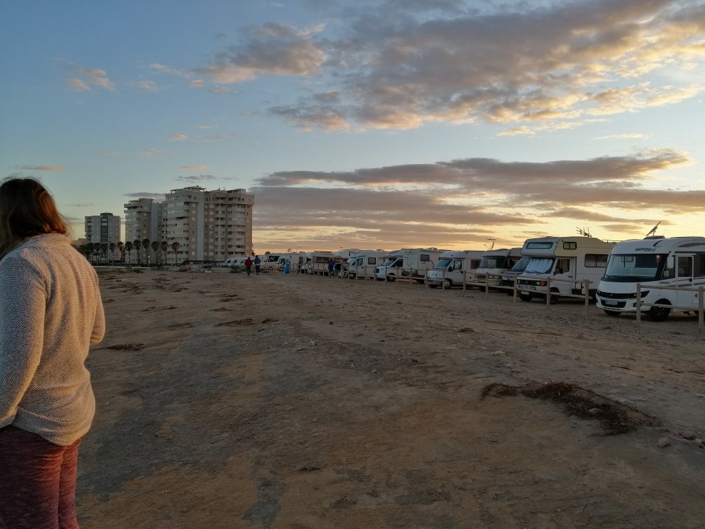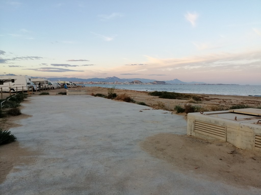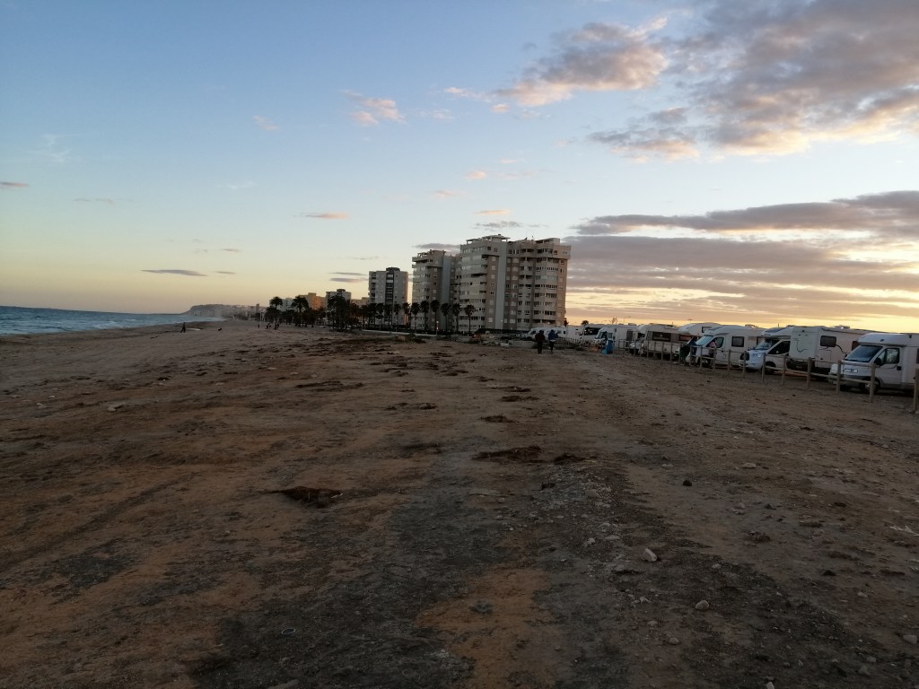 Heute geht es für uns noch weiter in Richtung Süden. Auf der Fahrt bemerken wir schon, das die Gegend immer weniger besiedelt und teils auch ärmer und verlassen wirkt. Gerade auch die immer trockenere Vegitation, oder besser die fast nicht vorhandene, gibt uns als Naturliebende Menschen ein unnahbares Gefühl. Dieses zeichnete sich auch weiter ab, als wir am Hafenstädtchen Santa Pola eintreffen. Die Gegend und die gesamte Infrastruktur wirkt hier schon relativ arm, dennoch ist es interessant und zugleicht beängstigend, wie unser Europa auch noch sein kann. Unser Platz für die Nacht ist einer der größten Campingplätze die wir bis dato je gesehen haben. Etliche Etagen reihen sich dem leichten Hang nacheinandern nach oben. Überwinterer aus aller Hergottsländern kommen hier auf dem Camping Bahia zusammen.