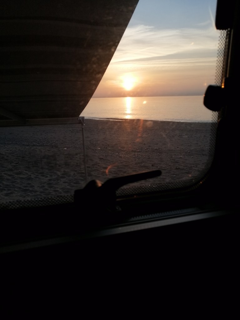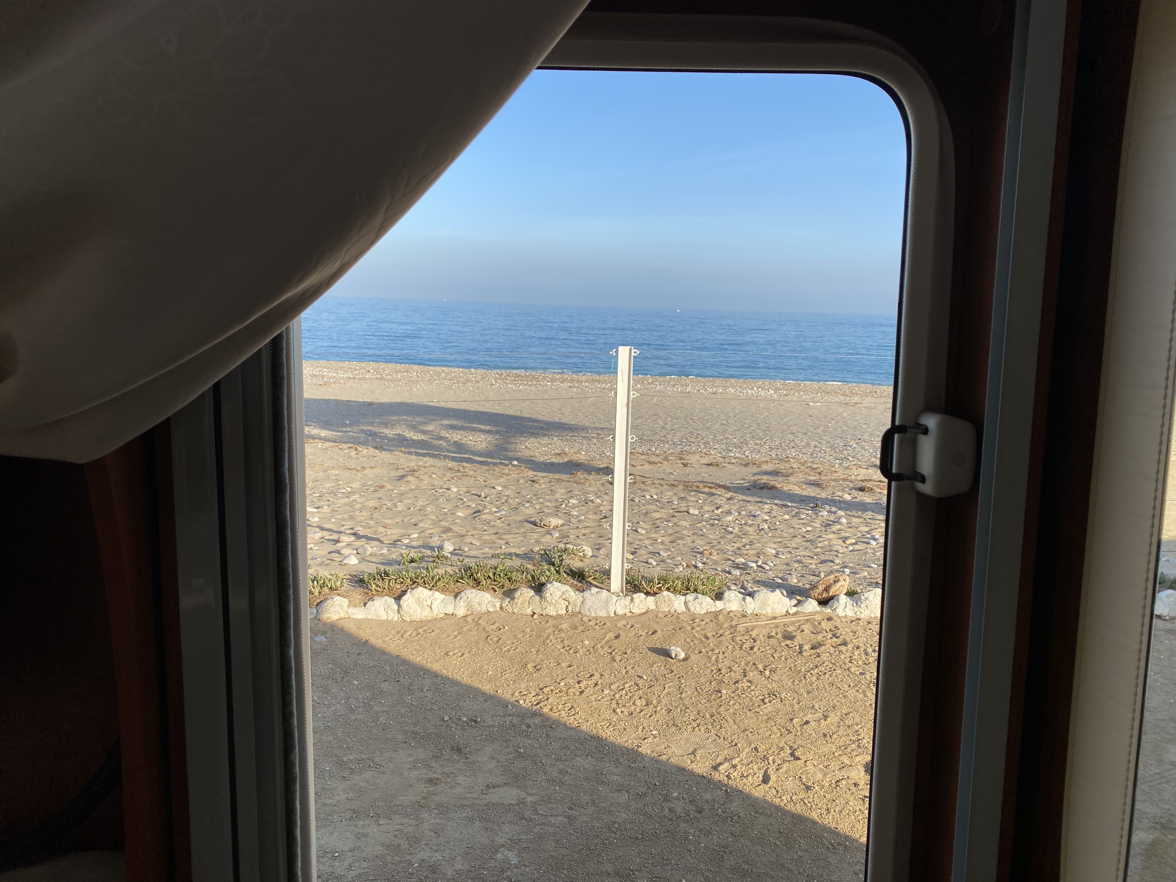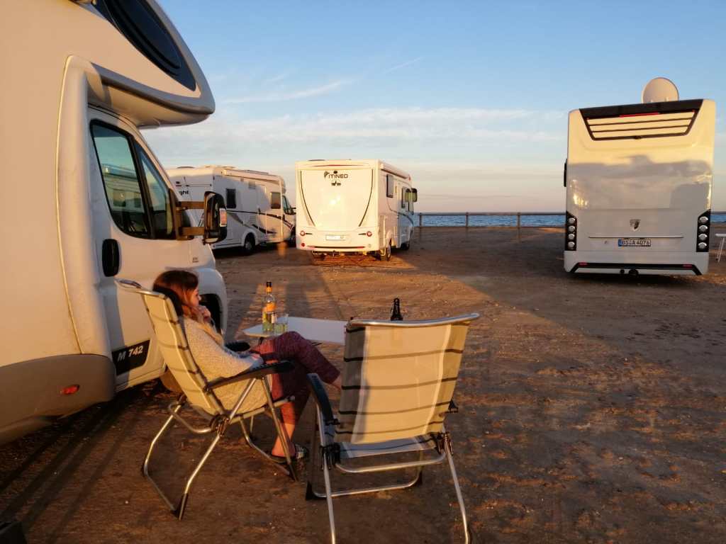 Auch wenn wir es nun schon ein paar mal erleben durften, ist der Blick auf das Meer kurz nach dem Aufwachen jedes Mal unbezahlbar. Gut, das könnte man im Hotel bei einem guten Zimmer auch haben. Aber kurz nach dem Aufstehen mit der Morgenzigarette und einer Tasser Kaffee vor dem Wohnmobil zu sitzen und dem Rauschen des Meeres zu lauschen und die immer wiederkehrenden Wellen zu beobachten, das ist wirklich mehr als selten. Und eines, das hat man wirklich nur als Camper – und zwar nur im Bademantel bekleidet dann auch noch die Zähne mit diesen einzigartigen Blick zu putzen.