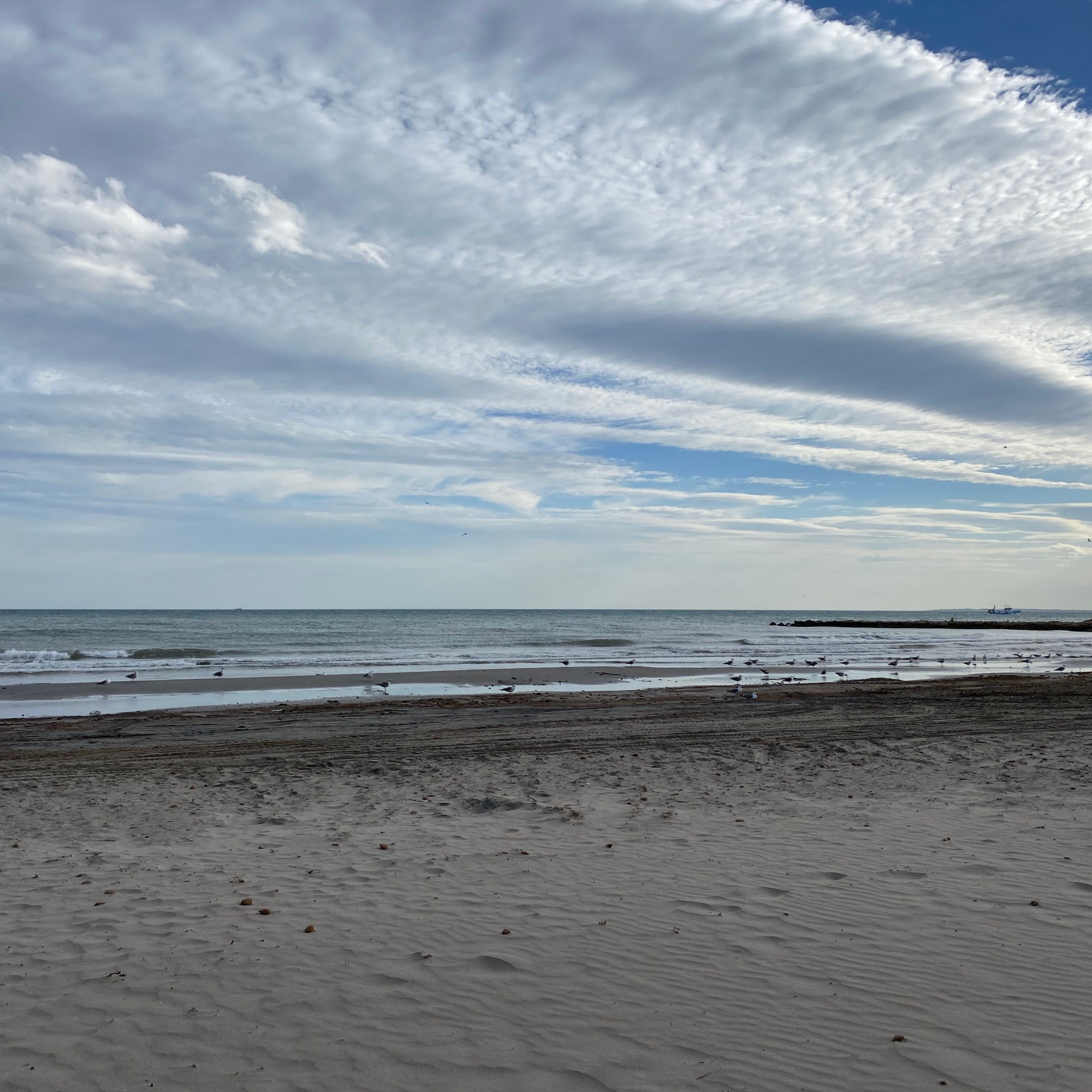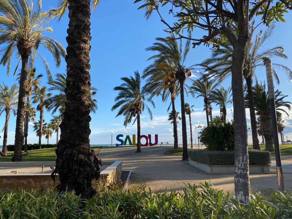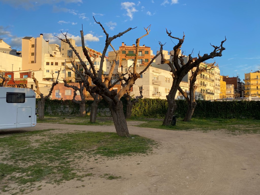Kurz nach der Ankunft gab es für uns Kaffee und Kuchen, draußen vor dem Wohnmobil, im T-Shirt. Das erste Mal dieses Jahr. Wir entschieden uns trotz des Windes eine Fahrradtour zu unternehmen, so fuhren wir entlang der weitreichenden Strandpromenade weiter nördlich bis zum Ort Salou.
