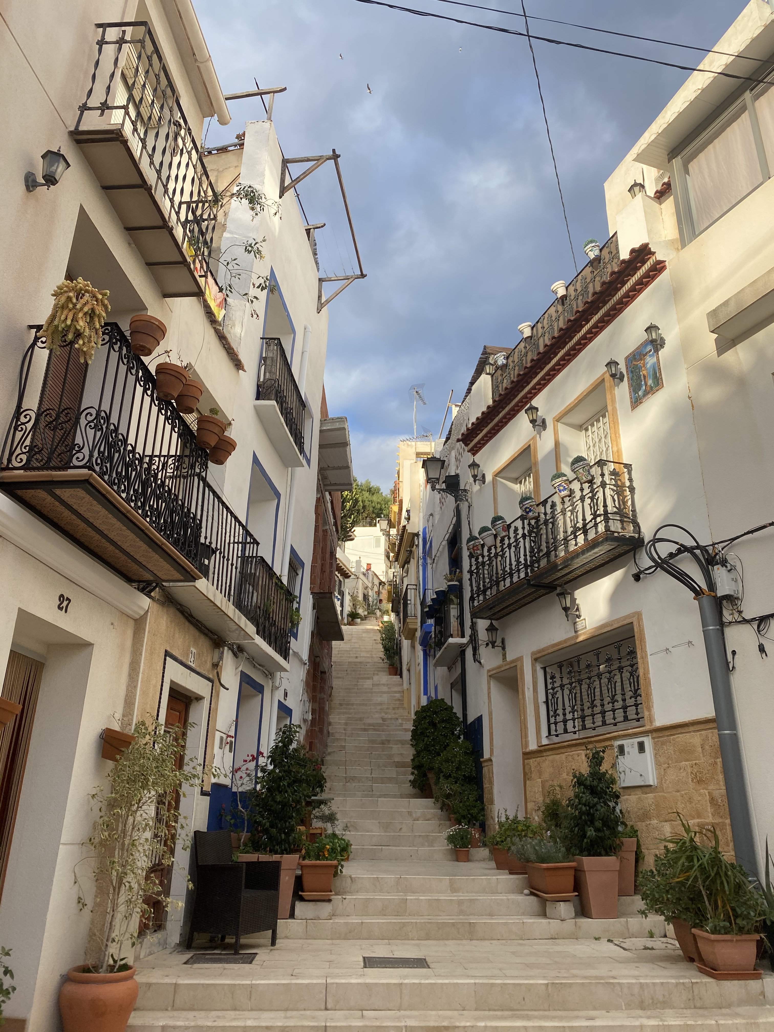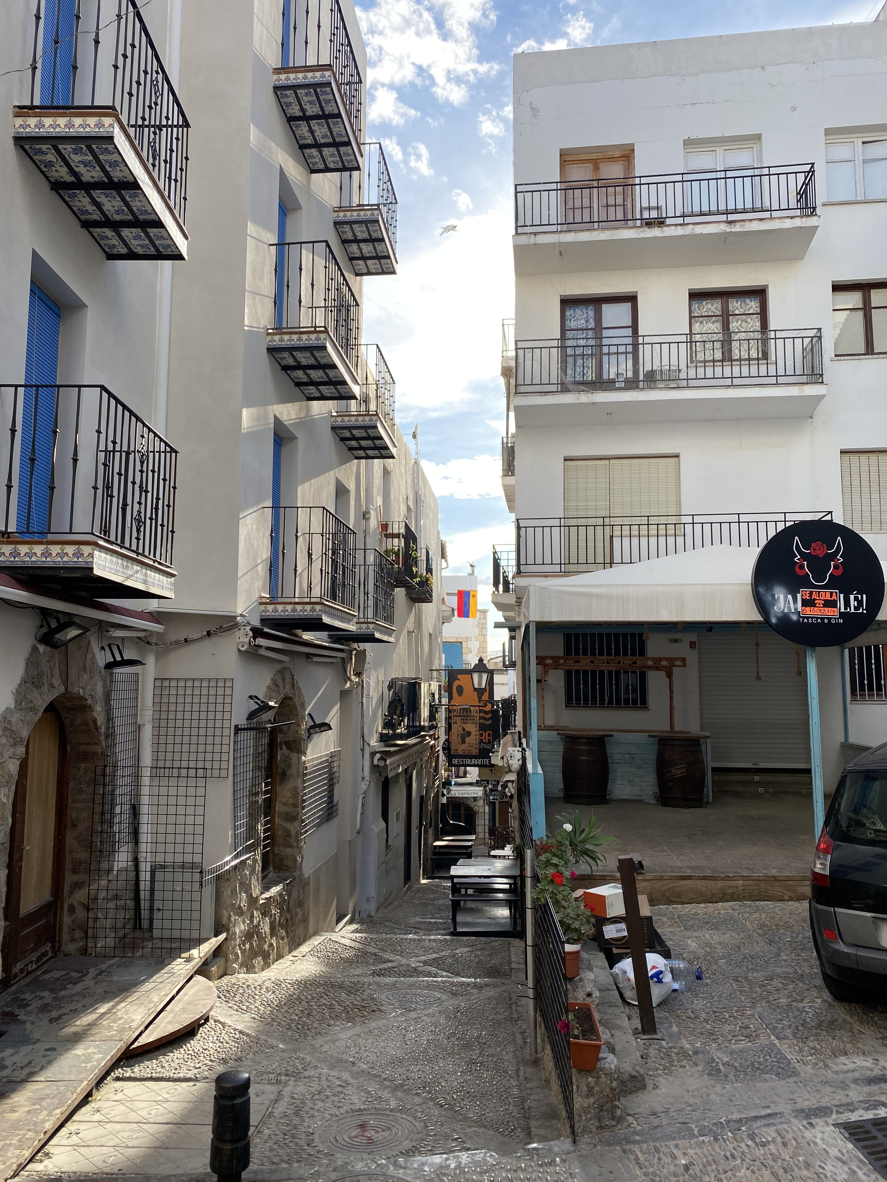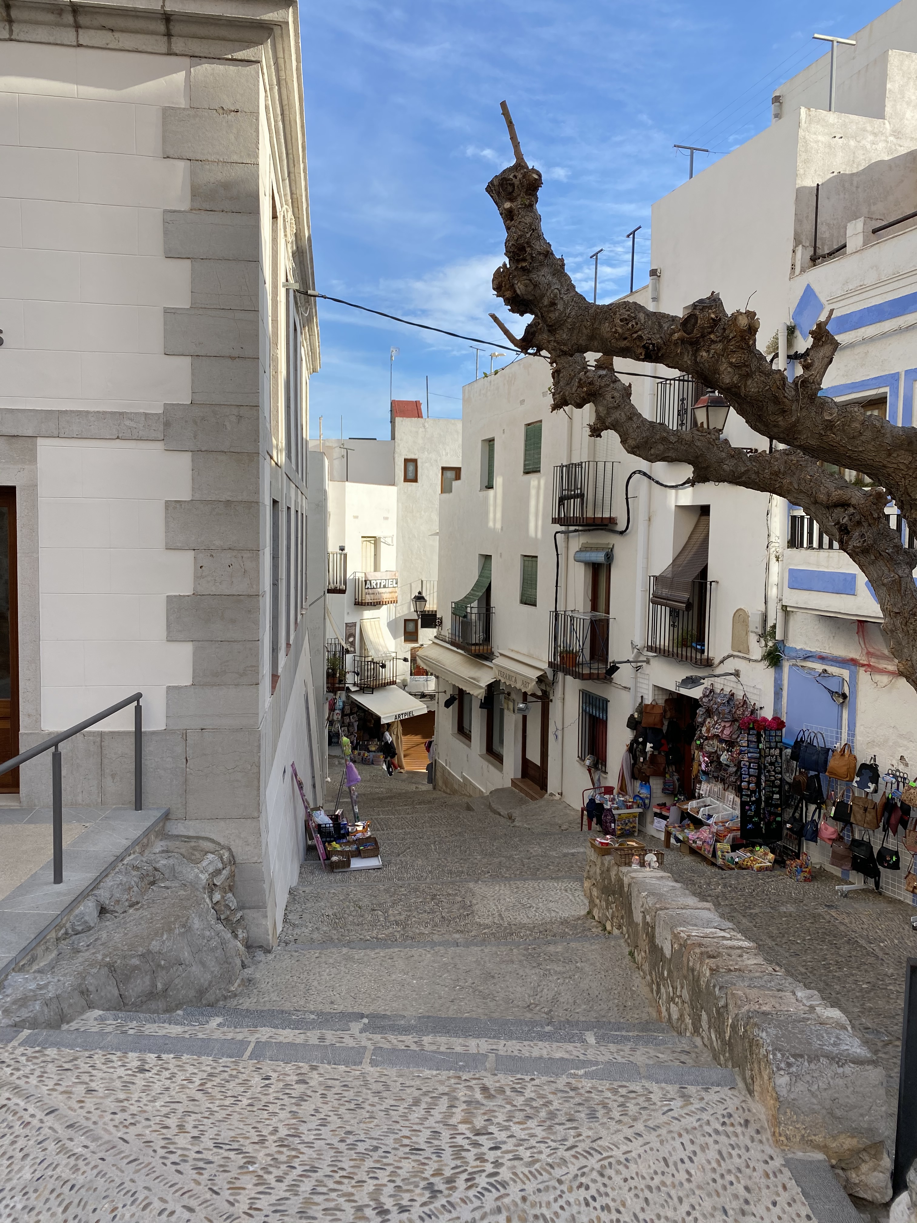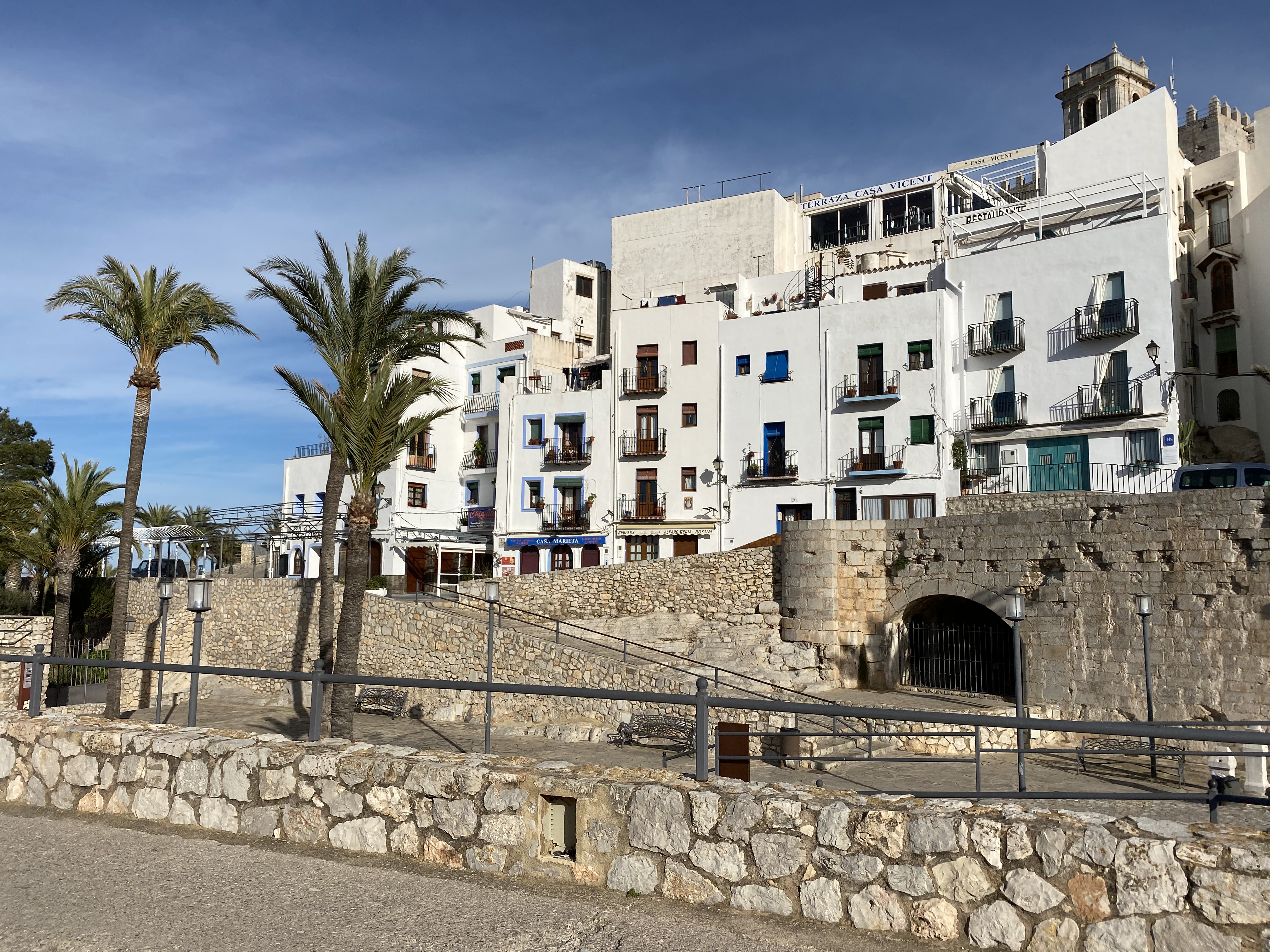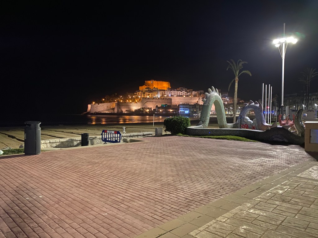 Nach dem stürmischen gestrigen Tag, geht es heute für uns ein bisschen weiter südlich, der Sonne und dem wärmeren Klima entgegen. Wieder nutzten wir Landstraßen, auf der die schönen spanischen Gegenden zum Vorschein kommen. Die Landschaft hier ist gerade sehr von Obst und Gemüseanbau geprägt, dort wo bewässert wird. Abseits dieser nahe an Flüssen oder dem Meer liegenden Gegend, ist es stattdessen sehr staubig und trocken. Gerade wenn man von Bergen in die Täler schaut, sieht man diese Gegensätze der trockenen wüstenartigen Gegend und dem künstlich hergestellten Grün sehr deutlich. Unser heutiges Ziel ist Peniscola. Das Örtchen ist ein wahres Touristen Highlight, und zwar nicht nur wegen dessen ulkig klingenden Namen, sondern wegen der historischen Altstadt mit seinen schmalen Gässchen und ihrer dazugehörigen Burg, die sich auf einer Landzunge ins Meer hineinstreckt. Am Nachmittag trafen wir am Platz Camping Eden ein, der noch einige Plätze nebst den Überwinterern frei hatte. Der im Vergleich zu den anderen Plätze in dieser Region eher kleinere Campingplatz bietet schöne Stellplätze umgeben von Sträuchern und Dächern aus den hier typischen Hartlaubgewächsen. Sehr positiv fiel uns hier das Outdoor Waschbecken auf, das auf jeder Parzelle zur Verfügung stand. Nach einer kurzen Stärkung verbrachten wir den Nachmittag in der malerischen Altstadt von Peniscola.