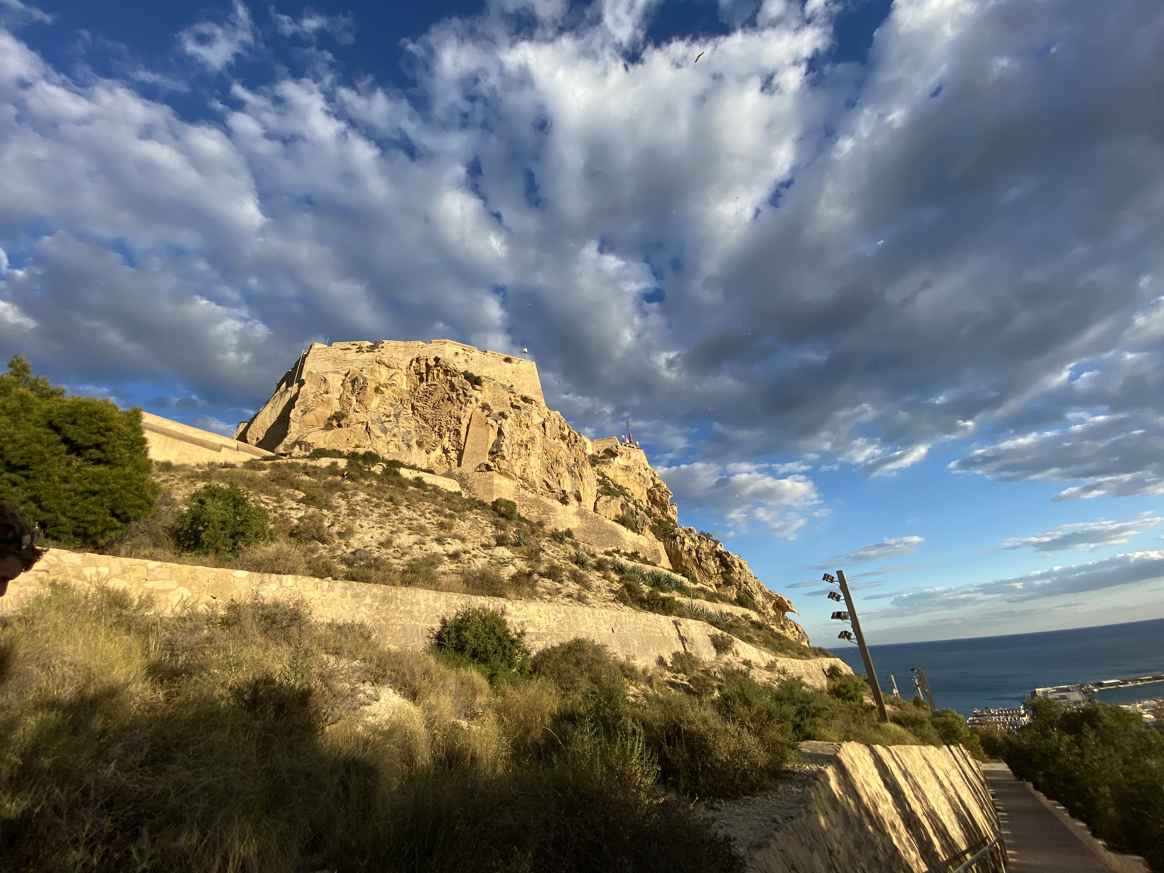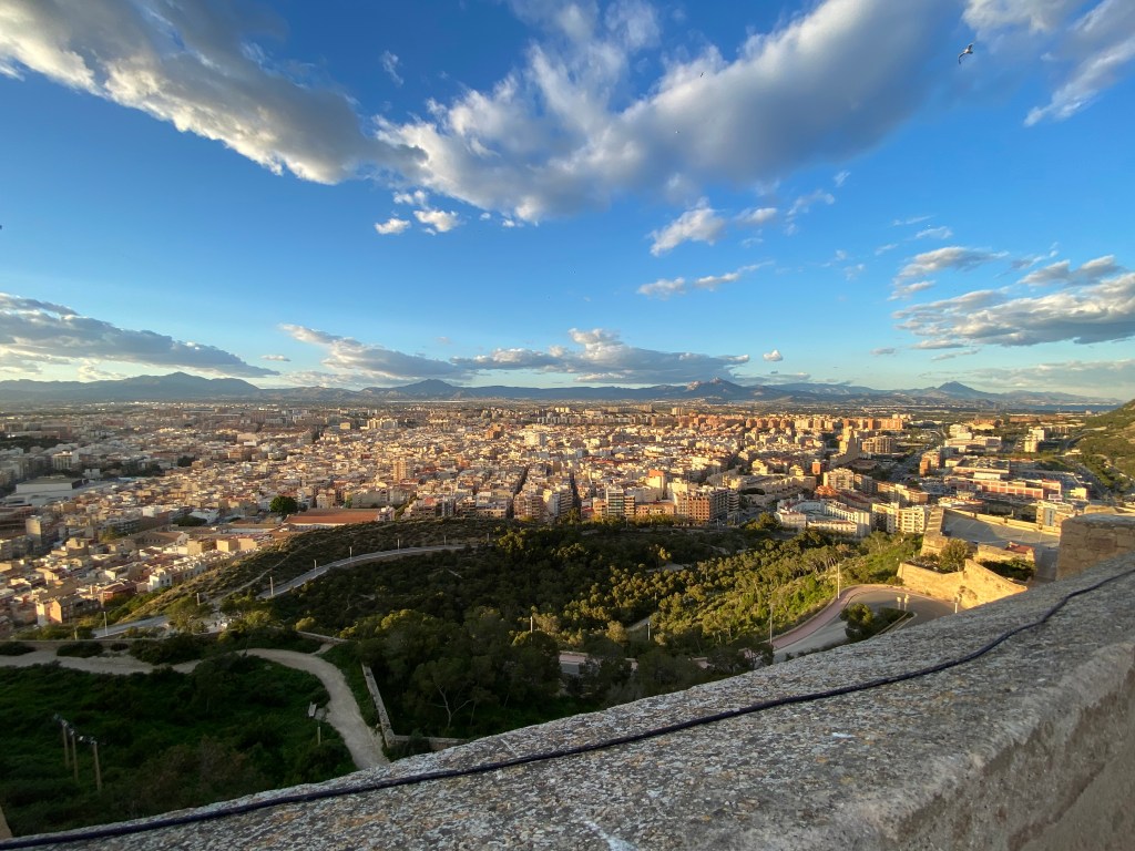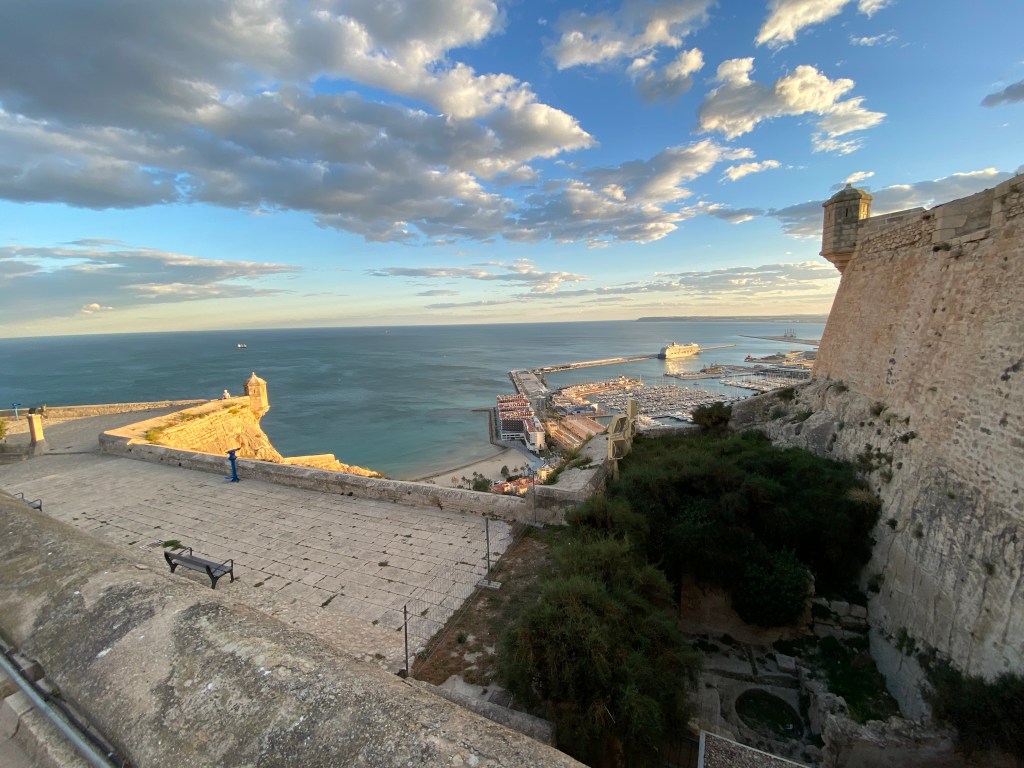 Angekommen in Alicante fuhren wir den etwas außerhalb gelegenen Stellplatz Area Camper Alicante an, von dem es etwa 10 km mit dem Radl bis in den Stadtkern von Alicante sind. Die Lage des Stellplatzes relativiert sich dennoch, denn die begehrten Badestrände von Alicante liegen in direkter Lage am Stellplatz und auch hier sind einige Geschäfte und Restaurants zu finden. Die schöne Großstadt besticht durch ein reiches Angebot an Restaurants und Einkaufsmöglichkeiten, aber in kultureller Hinsicht auch mit ihrer Burg, die oberhalb der Stadt auf einem angrenzenden Berg thront und die Stadt von oben herab bewacht.