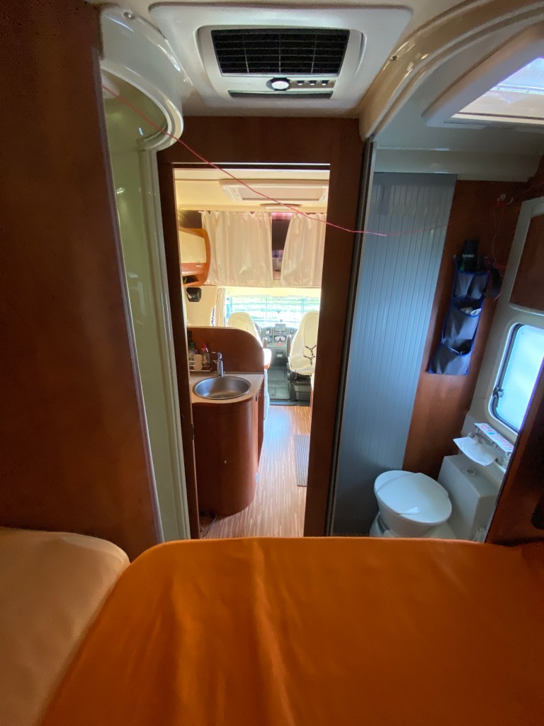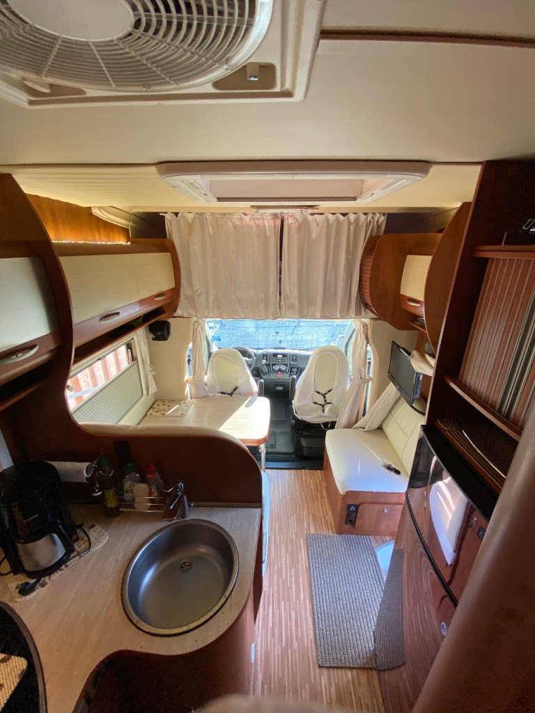 Gerade wer einmal bei 45 Grad in Spanien geschwitzt hat weiß, wie wichtig es dann sein kann einen kühlen Wohn-und Schlafraum vorzufinden. So sind wir mehr als dankbar für den Dienst der Standklimaanlage im hinteren Teil und des Dachlüfters im vorderen Teil.